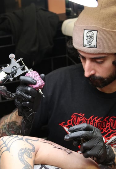Mehr als nur ein Studio – unser Raum ist zu einem Treffpunkt für herausragende Tätowiererinnen und Tätowierer der nationalen und internationalen Szene geworden – ein kreatives Zentrum, in dem Leidenschaft und Professionalität Hand in Hand gehen.