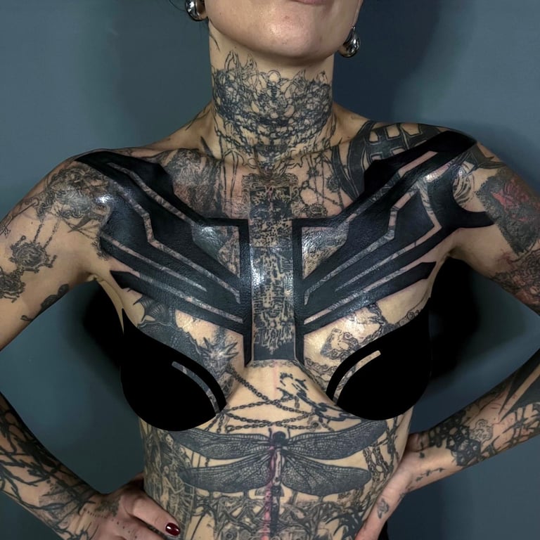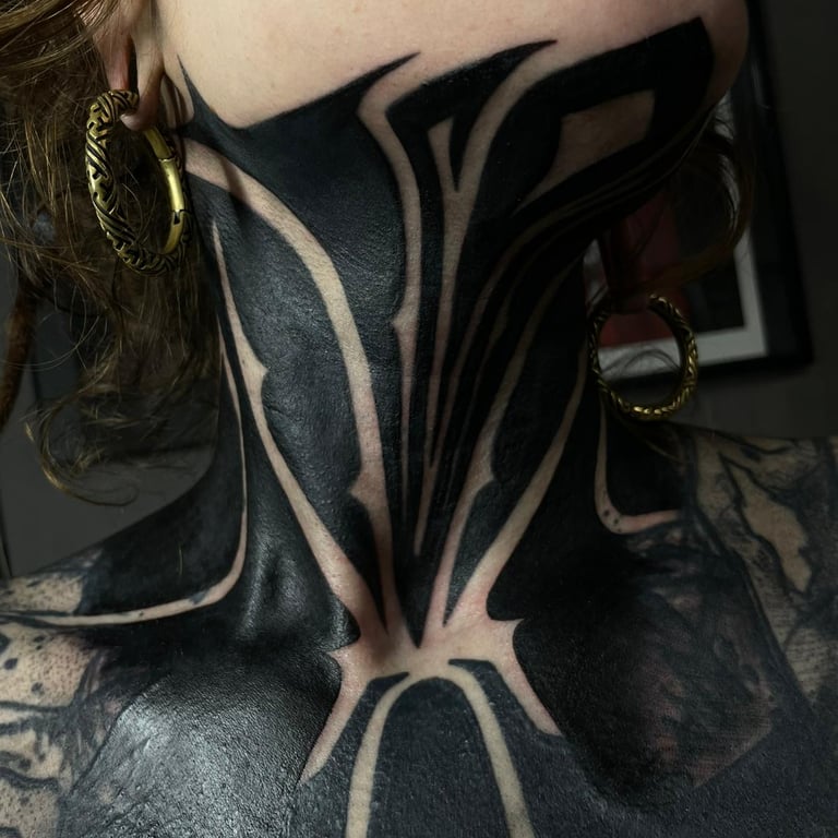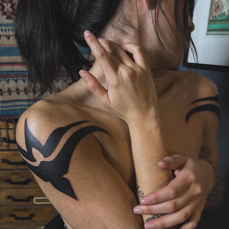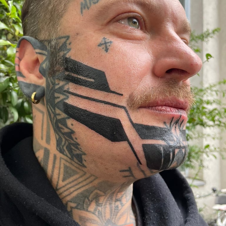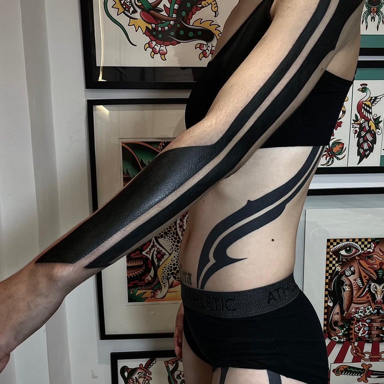 Ich mache neotribale Tattoos – kräftige, abstrakte Designs, die mit der Form des Körpers fließen.